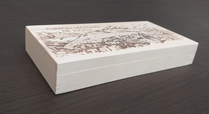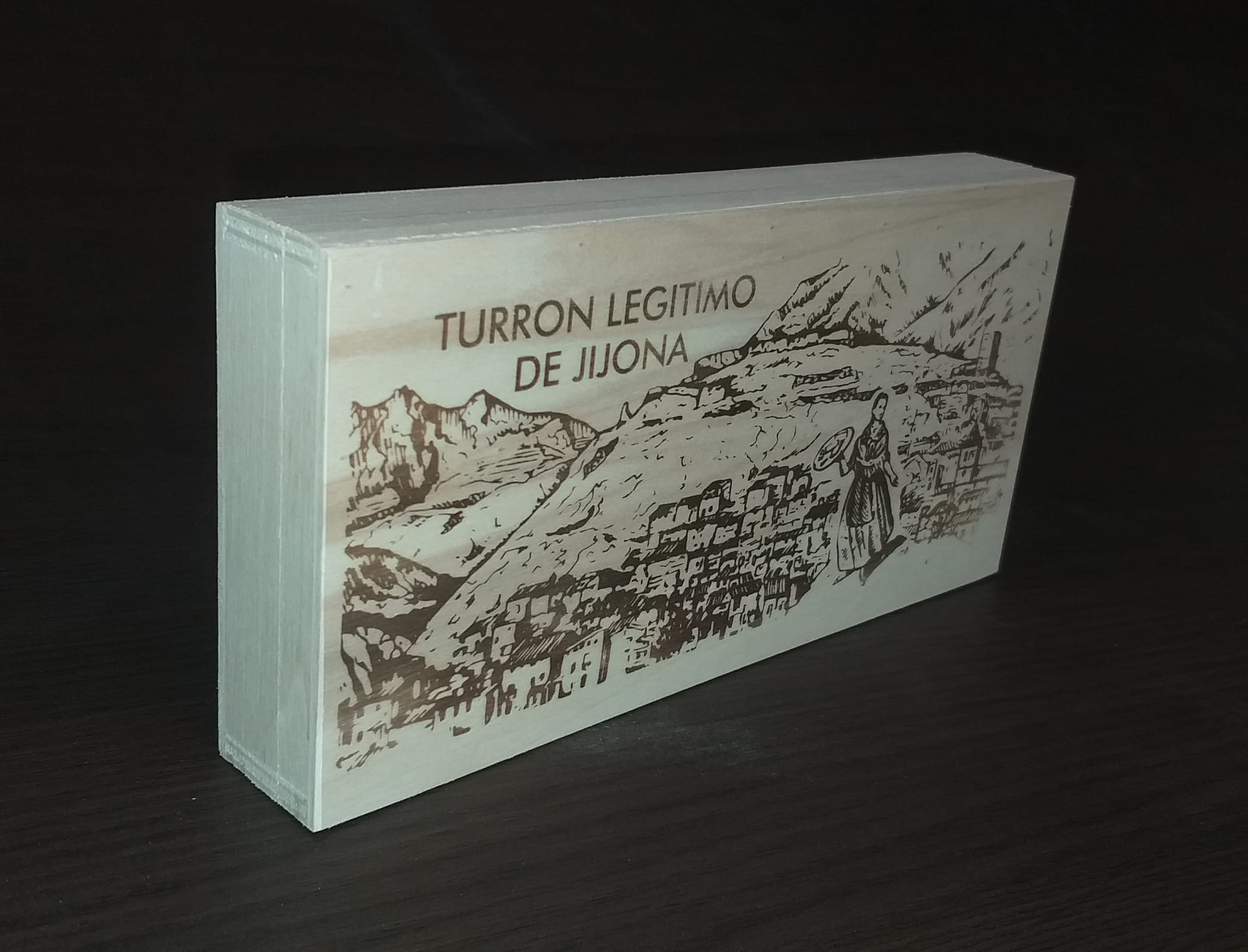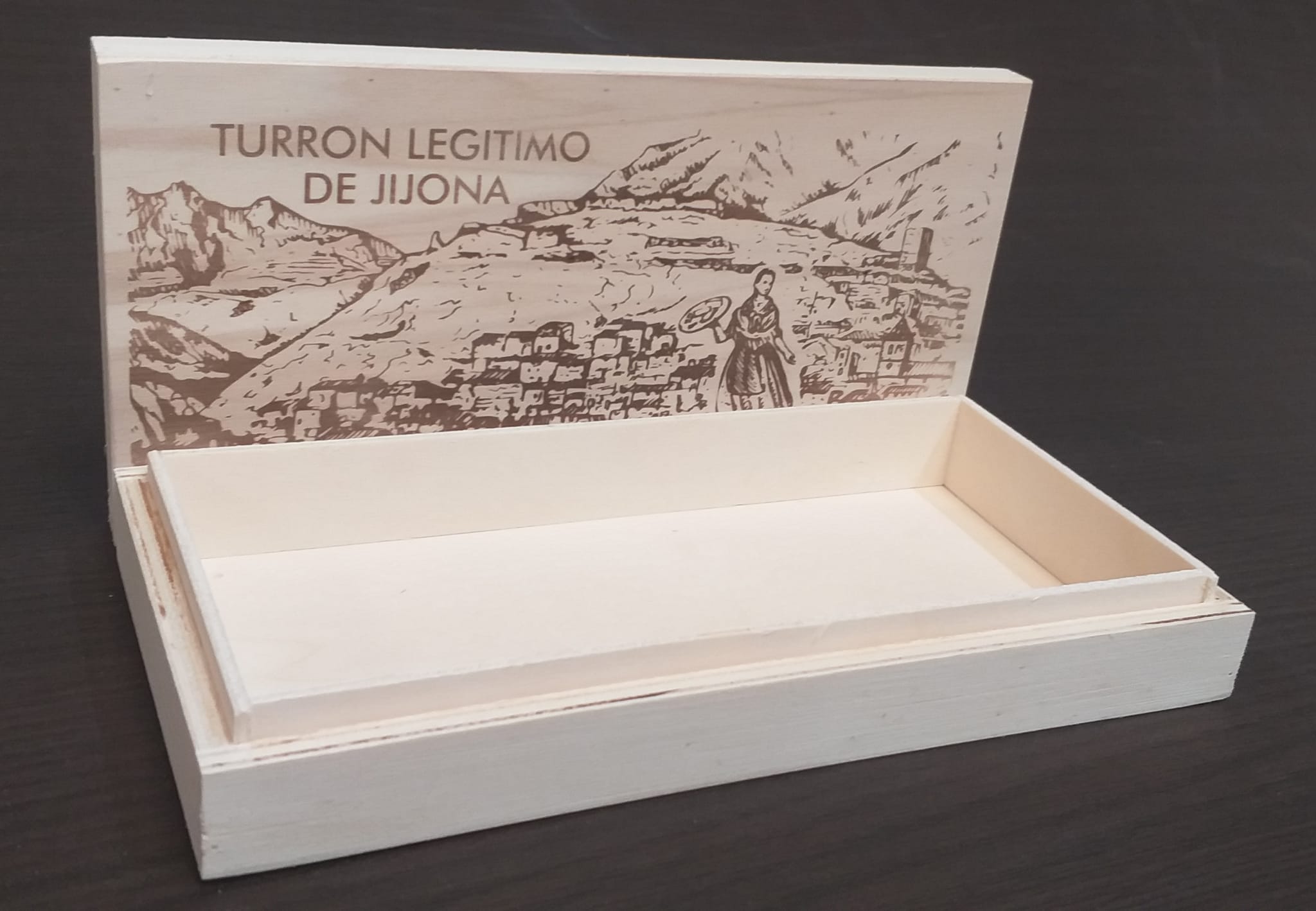 Estuche de madera de contrachapado de chopo para turrón a la piedra con el logo timbrado con calor a relieve. Si necesita presupuesto de más cantidad no dude en contactar con nosotros.